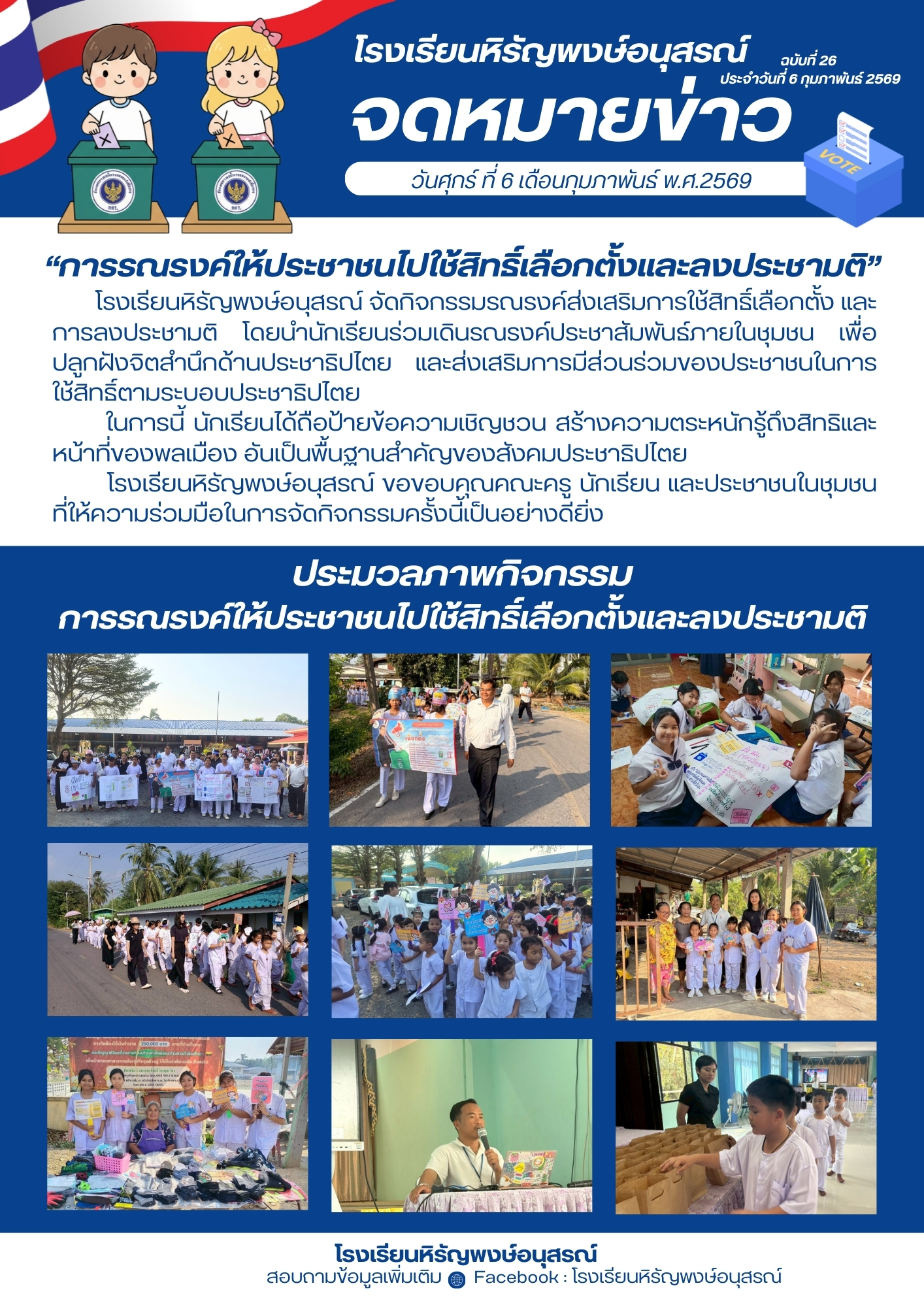 กิจกรรมรณรงค์ให้ประชาชนไปใช้สิทธิ์เลือกตั้งและลงประชามติในวันที่ 8 กุมภาพันธ์ 2569 06/02/202607/04/2026hs_adminข่าวกิจกรรม